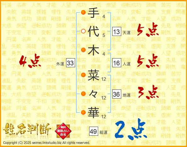 手代木菜々華さんの外運は33画の4点!