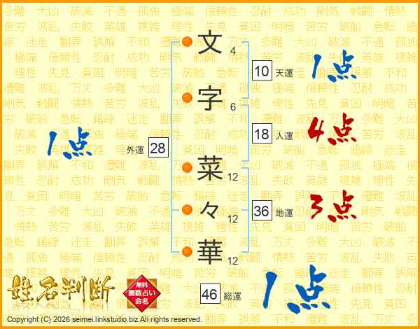 文(4画)字(6画) 菜(12画)々(12画)華(12画)