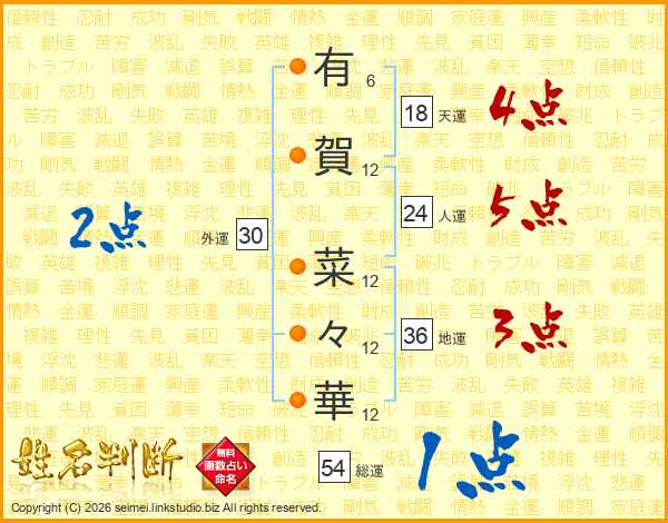 有賀菜々華さんの総運は54画の1点!