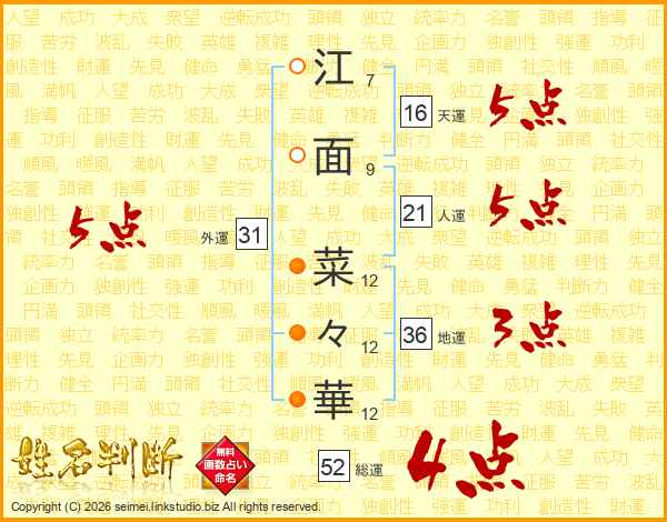 江面菜々華さんの総運は52画の4点!