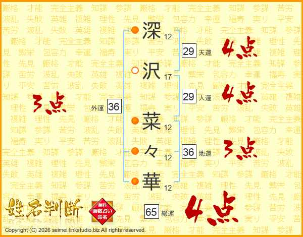 深沢菜々華さんの総運は65画の4点!