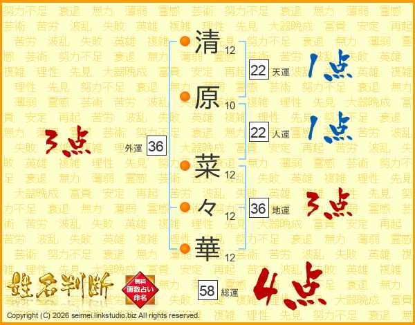 清原菜々華さんの総運は58画の4点!
