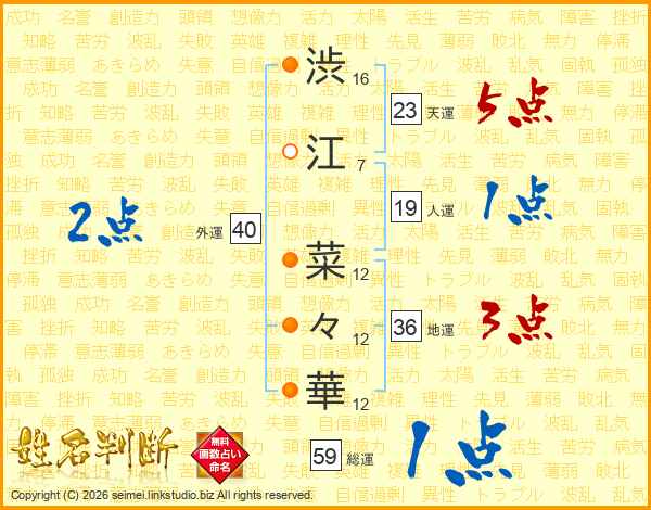 渋(16画)江(7画) 菜(12画)々(12画)華(12画)