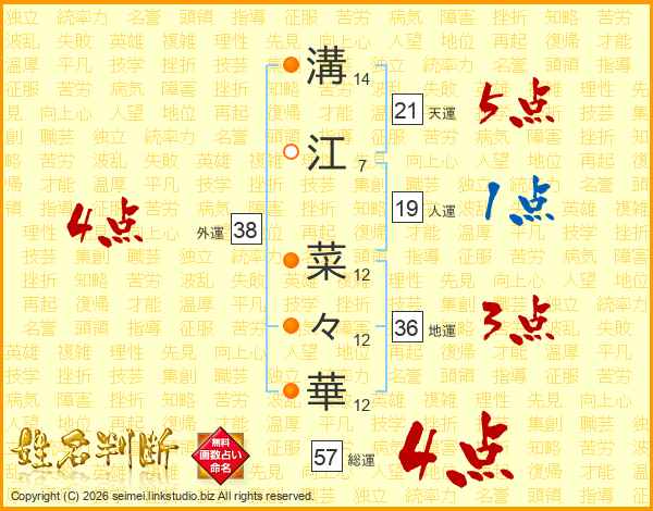 溝江菜々華さんの外運は38画の4点!