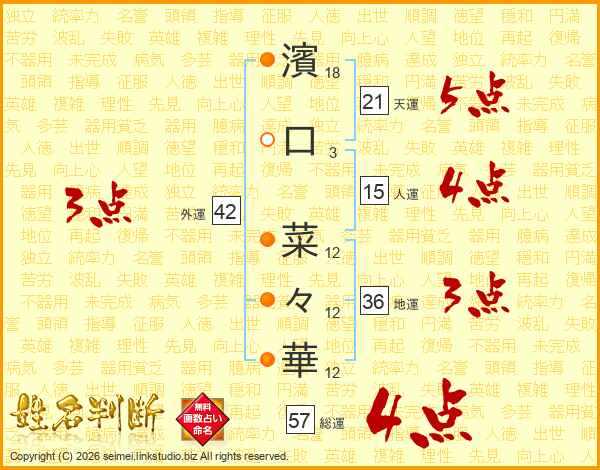濱口菜々華さんの天運は21画の5点!