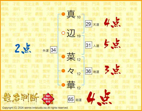 真辺菜々華さんの総運は65画の4点!