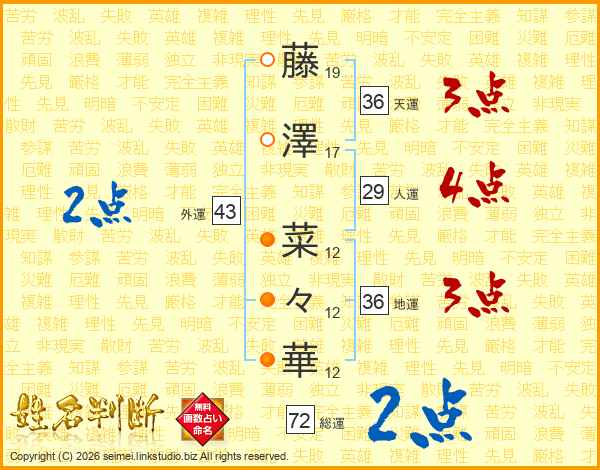 藤澤菜々華さんの総運は72画の2点!