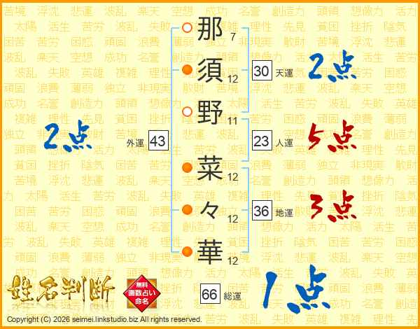 那須野菜々華さんの総運は66画の1点!