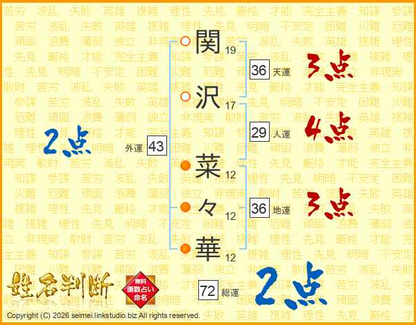 関沢菜々華さんの総運は72画の2点!