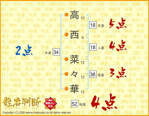 高西菜々華さんの総運は52画の4点!