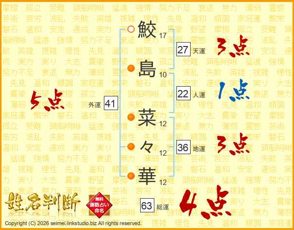 鮫島菜々華さんの総運は63画の4点!