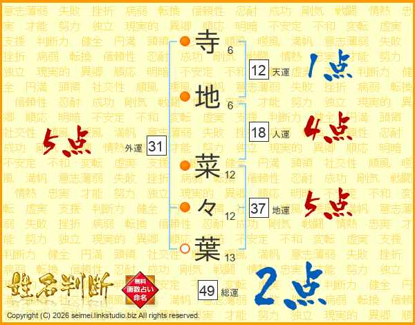 寺地菜々葉さんの総運は49画の2点!