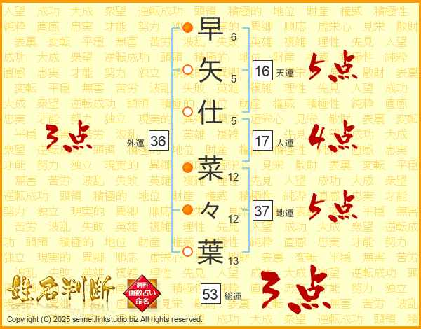 早矢仕菜々葉さんの外運は36画の3点!