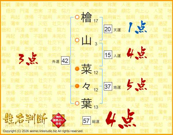 檜山菜々葉さんの総運は57画の4点!