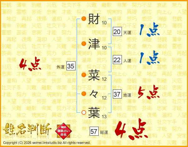 財津菜々葉さんの総運は57画の4点!