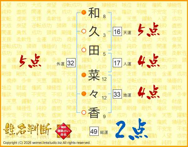 和久田菜々香さんの総運は49画の2点!