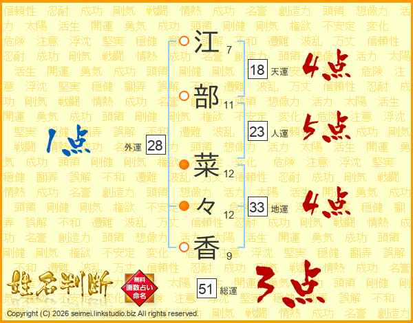 江部菜々香さんの総運は51画の3点!