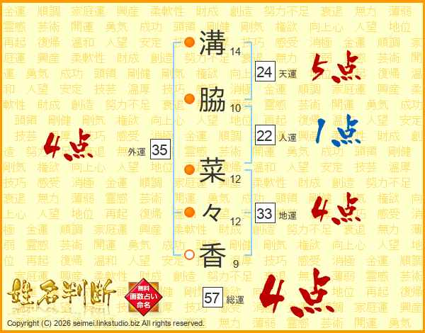 溝(14画)脇(10画) 菜(12画)々(12画)香(9画)