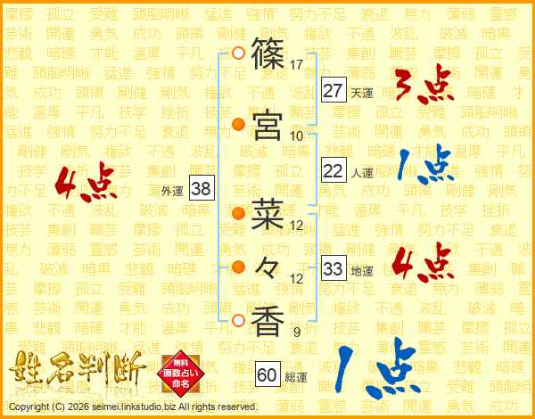 篠(17画)宮(10画) 菜(12画)々(12画)香(9画)