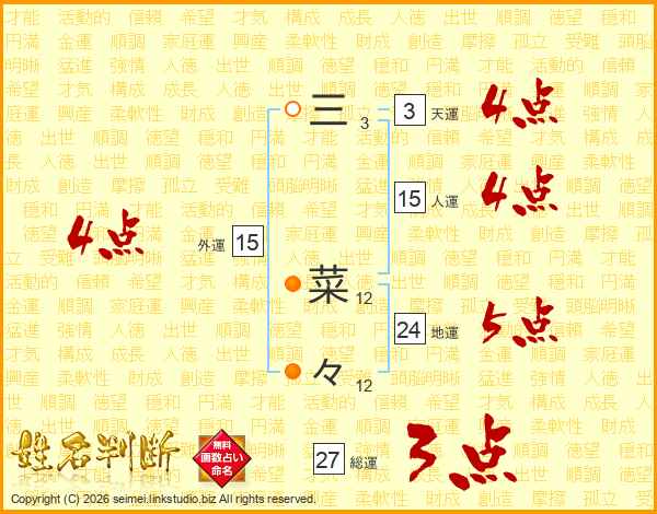 三菜々さんの総運は27画の3点!