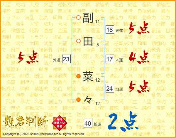 副田菜々さんの総運は40画の2点!