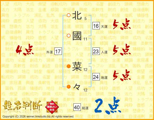 北國菜々さんの総運は40画の2点!