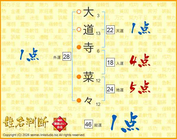 大道寺菜々さんの総運は46画の1点!