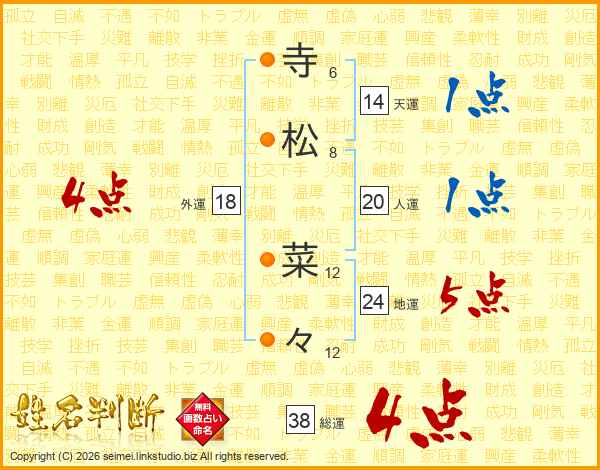 寺松菜々さんの総運は38画の4点!