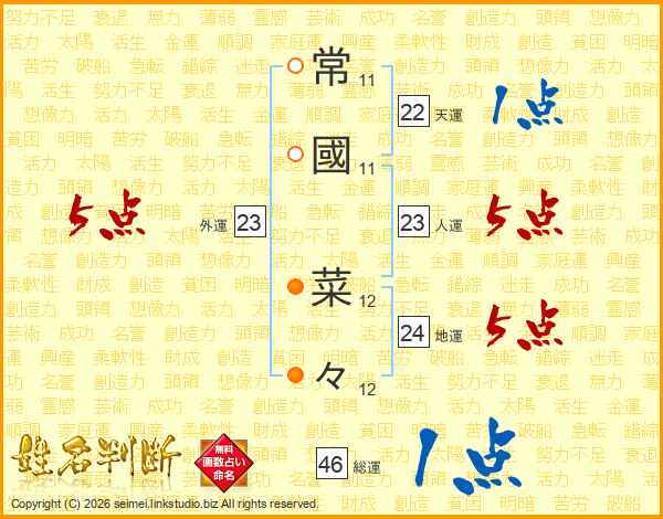 常國菜々さんの総運は46画の1点!