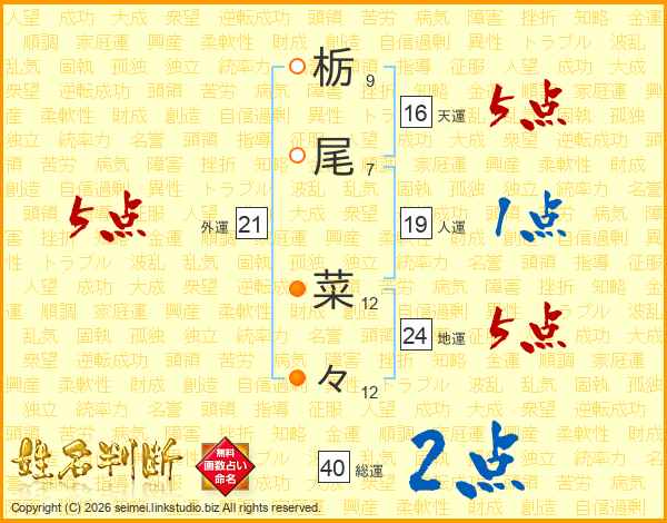栃尾菜々さんの外運は21画の5点!