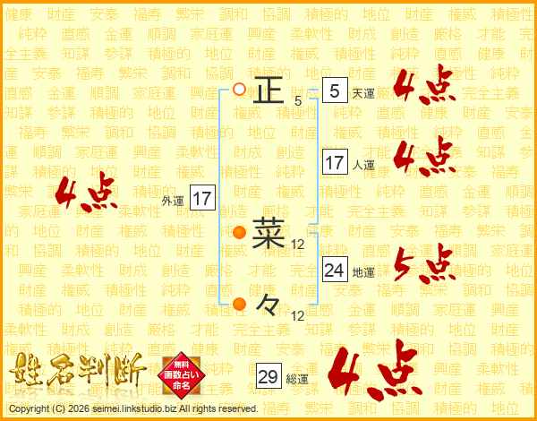 正菜々さんの総運は29画の4点!