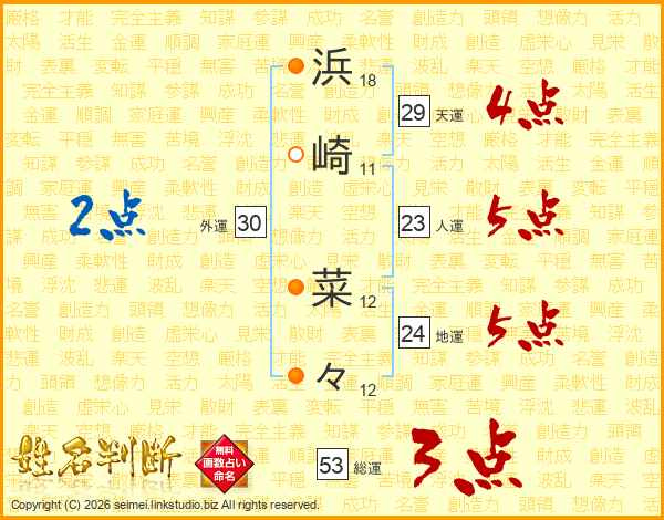浜(18画)崎(11画) 菜(12画)々(12画)