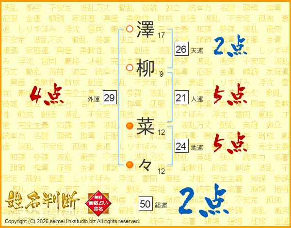 澤柳菜々さんの天運は26画の2点!