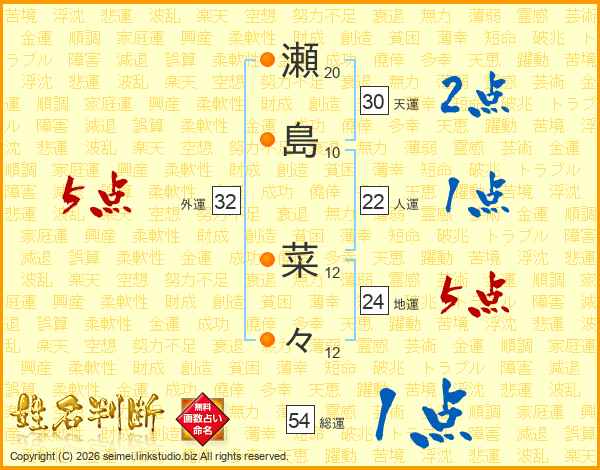 瀬島菜々さんの総運は54画の1点!
