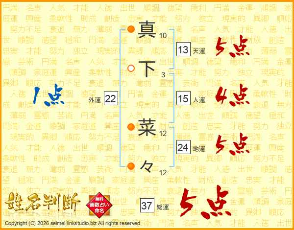 真下菜々さんの総運は37画の5点!