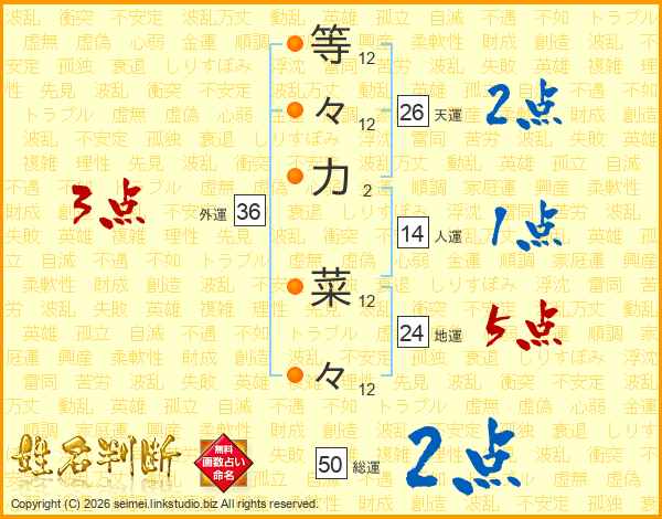 等々力菜々さんの天運は26画の2点!