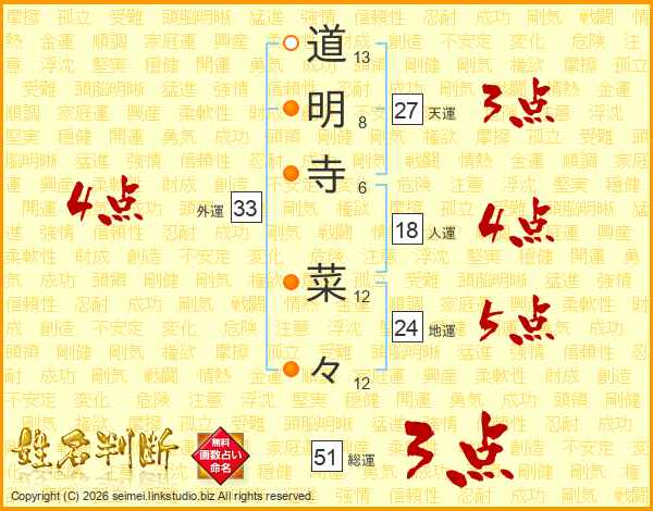 道明寺菜々さんの総運は51画の3点!