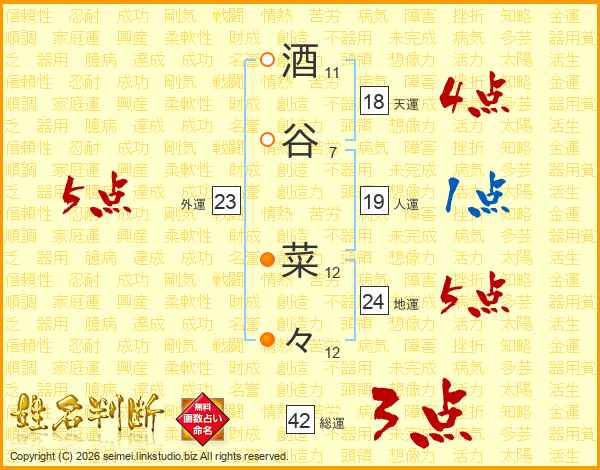 酒(11画)谷(7画) 菜(12画)々(12画)