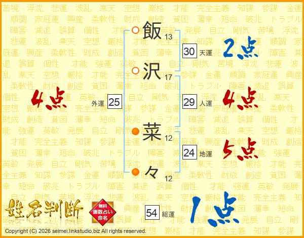飯沢菜々さんの総運は54画の1点!