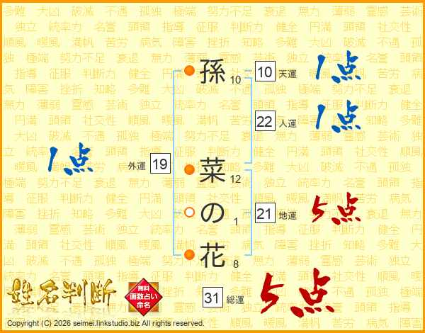 孫菜の花さんの総運は31画の5点!