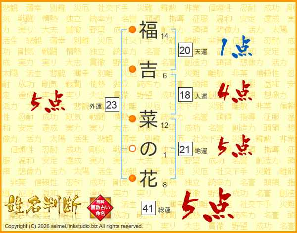 福吉菜の花さんの総運は41画の5点!