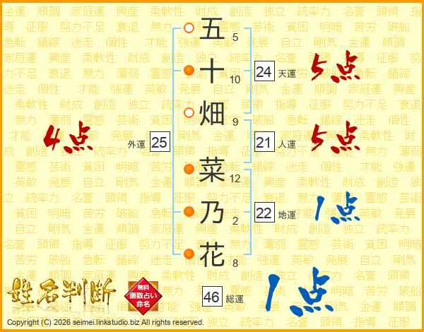 五十畑菜乃花さんの総運は46画の1点!