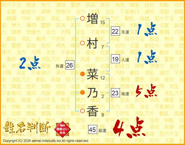 増村菜乃香さんの総運は45画の4点!
