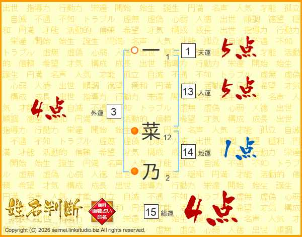 一菜乃さんの総運は15画の4点!
