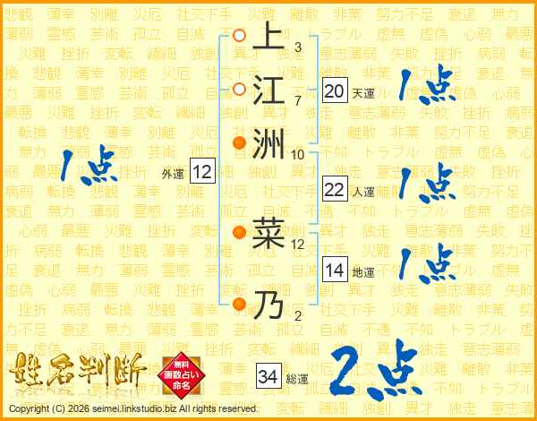 上江洲菜乃さんの総運は34画の2点!