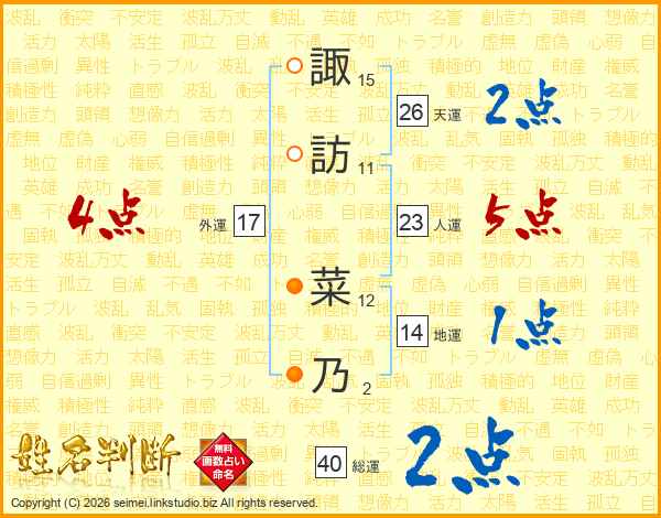 諏訪菜乃さんの総運は40画の2点!