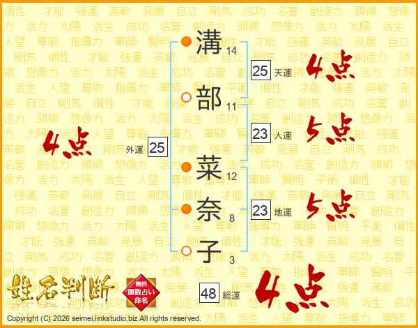 溝部菜奈子さんの総運は48画の4点!