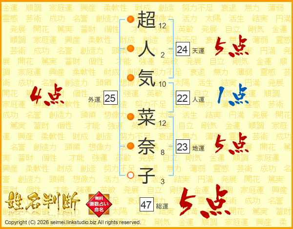 超人気菜奈子さんの総運は47画の5点!