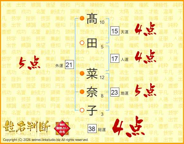 髙田菜奈子さんの総運は38画の4点!