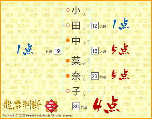 小田中菜奈子さんの総運は35画の4点!